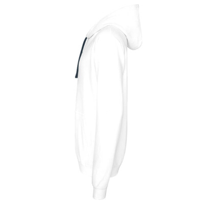 Twin needle stitching detailing, double fabric hood with contrast inner, contrast flat lace drawcords. Kangaroo pouch pocket with small opening for ear phone cord feed, hidden ear phone loops. Ribbed cuff and hem. Worldwide Responsible Apparel Production (WRAP) certified production.